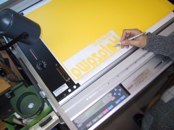 安く、早く仕上げる為には写真のようなマークをプリントする方法もあります。 当店がこだわっているユニフォーム製作はデザインをマークラバー素材にカッティングマシーンで一枚 〃 作り上げていきます。ラバー制作のワッペンも同様に作ります。 この方法は手間と時間がかかりますがユニフォームの生地と一体型になり、高級感と品位があります。 そして剥がれる心配がありません。 お客様が安心して頼めるか、また次も頼みたくなる気持ちを優先したいと思っています。