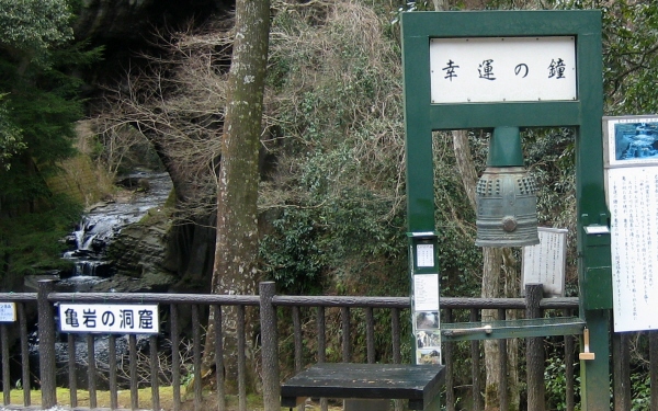 亀岩の洞窟を見て「幸運の鐘」鳴らして幸せを願う。